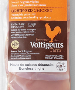 Several steps have to be taken before chicken can be labeled organic on the packaging. This requires raising the chicken in a natural environment with proper exposure to light as well as outdoor access and perches, which they can access freely. Ferme des Voltigeurs grain-fed chicken and turkey have a tender and juicy meat and would enhance the majority of recipes. Besides being the kids’ favorite for lunch, chicken is a fine choice for special-occasion dinners.